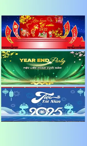 Sân khấu chính là linh hồn của mọi buổi tiệc liên hoan. Một phông nền đẹp giúp không gian trở nên trang trọng hơn. Nó tạo ấn tượng mạnh mẽ với khách mời tham dự. Đồng thời, đây cũng là nơi lưu giữ những tấm hình kỷ niệm đẹp. Thiết kế chuyên nghiệp giúp nâng tầm giá trị cho đơn vị tổ chức.