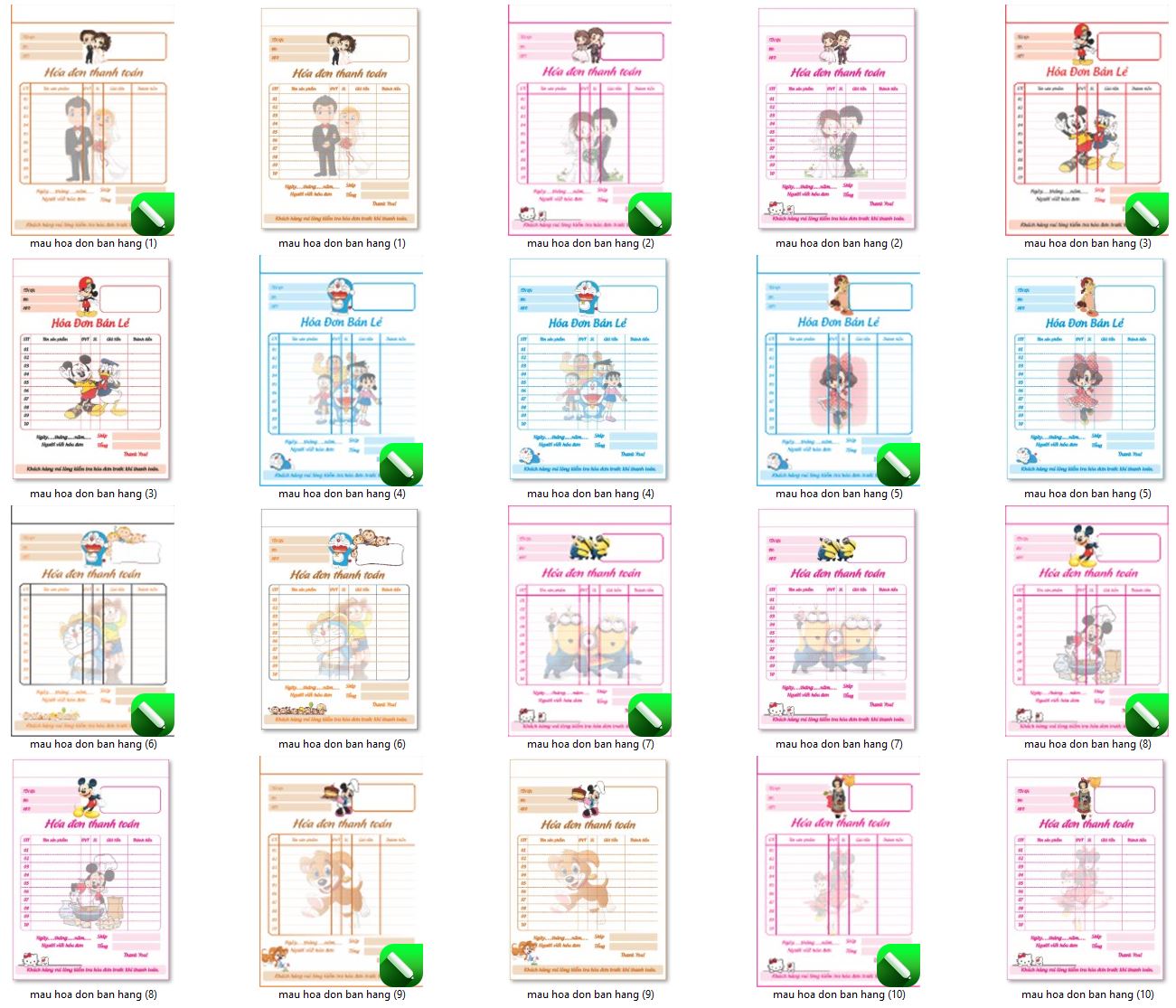 13+ Mẫu hóa đơn thanh toán