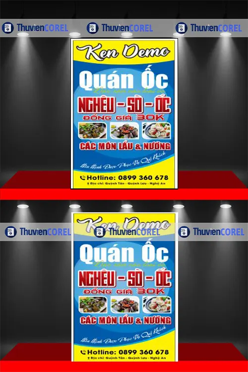 Đây là phương án tối ưu cho quán ốc bình dân. Chi phí thi công thấp và thời gian hoàn thành nhanh. Bạn dễ dàng in hình ảnh món ăn sinh động lên bạt.