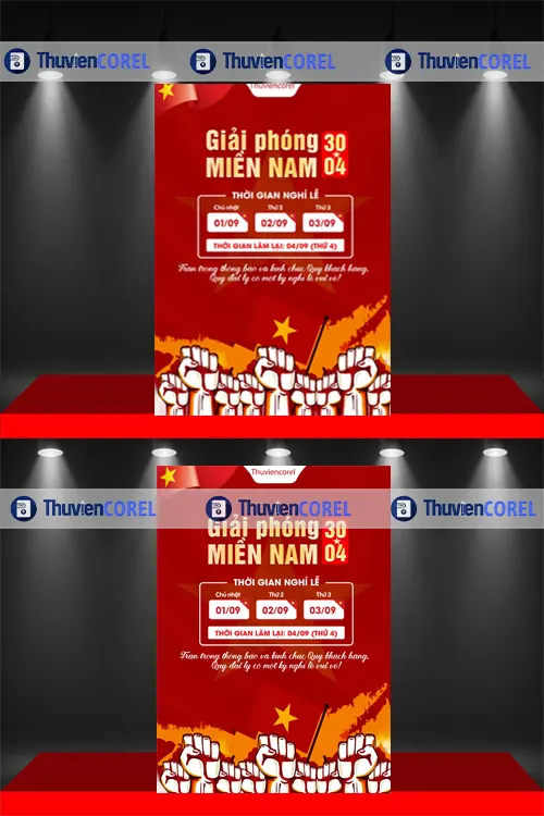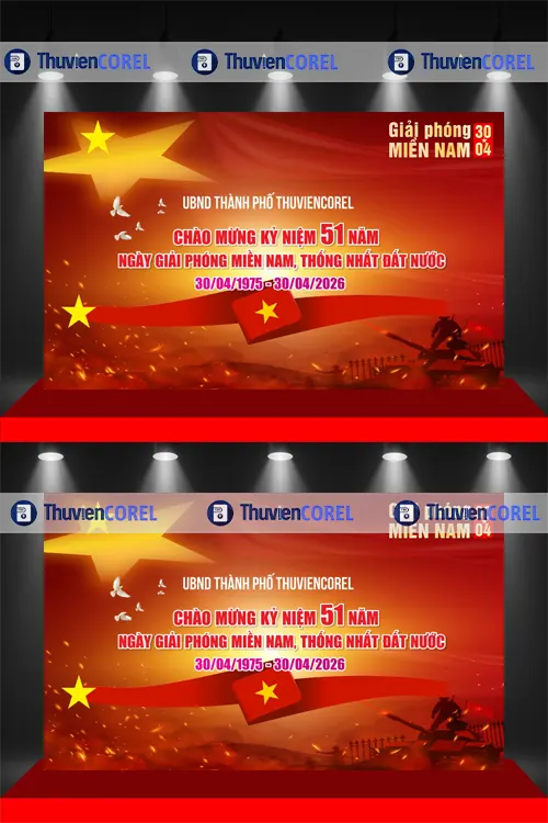 Sở hữu một maket phông nền chào mừng Giải phóng miền Nam giúp sự kiện thành công. Thuviencorel luôn đồng hành cùng cộng đồng thiết kế đồ họa Việt Nam. Hãy tải ngay những mẫu phông nền chất lượng cao nhất tại website của chúng tôi.